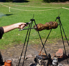 Wann immer es der Markt und die Zeit zulassen, versuchen wir möglichst anschaulich einen traditionell gewürzten Braten oder Suppen über offenem Feuer zu präsentieren.